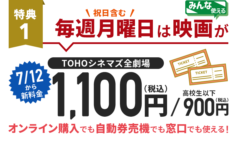 毎週月曜(祝日含む)は、映画鑑賞料金1,900円(税込)が1,100円(税込)に!