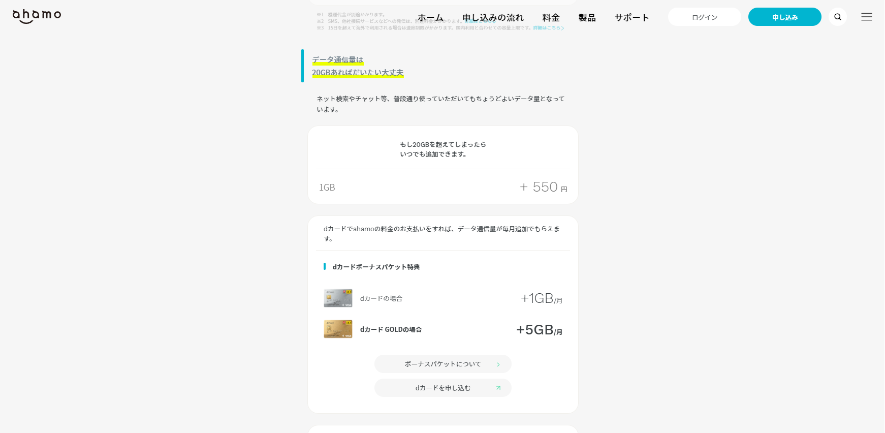 dカード特典で月々データ容量をプレゼント!